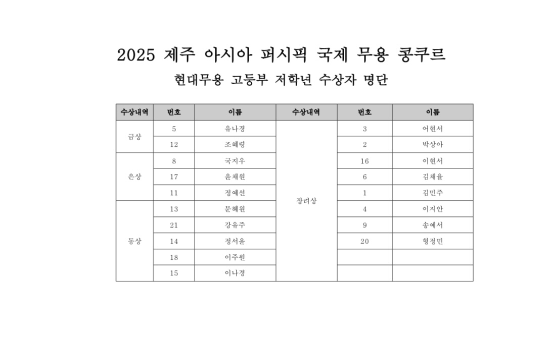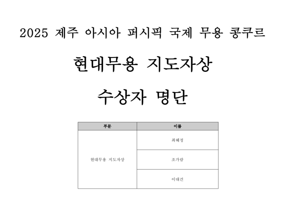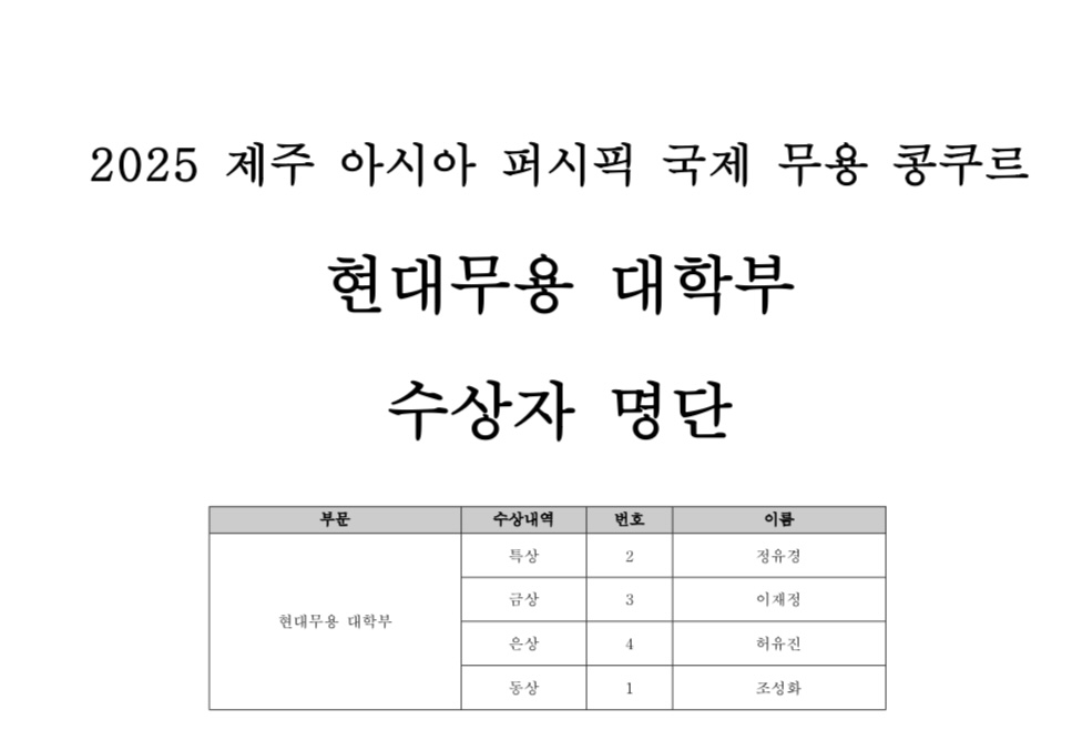 현대무용부문 수상자 발표