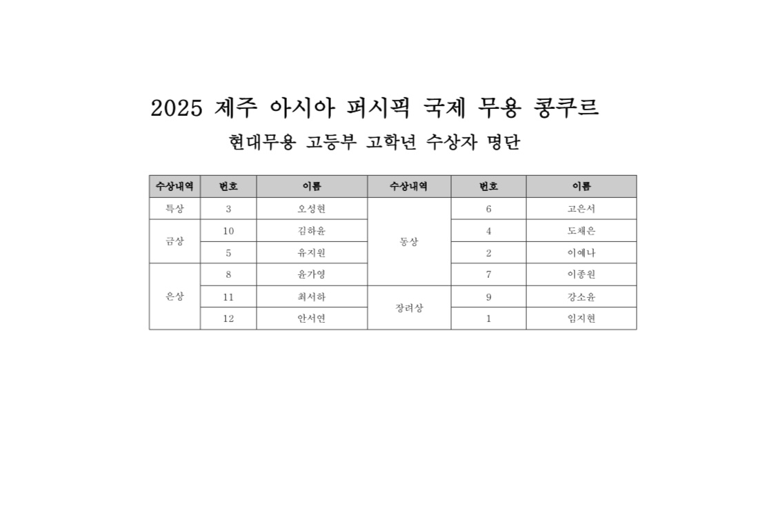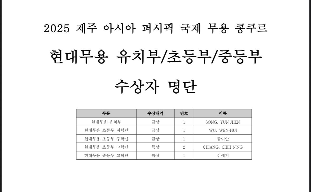 제주아시아퍼시픽 국제무용콩쿠르_순서표 및 공지사항