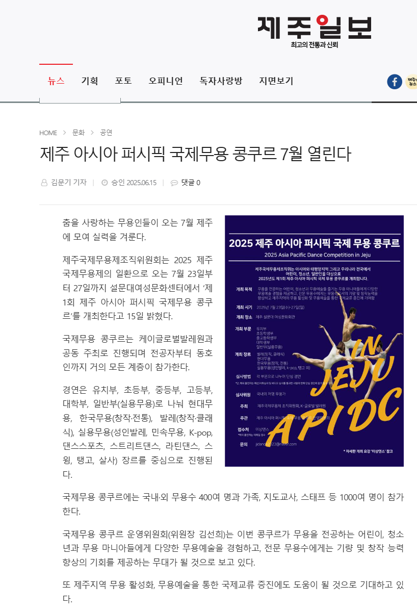 제주 아시아 퍼시픽 국제무용 콩쿠르 7월 열린다